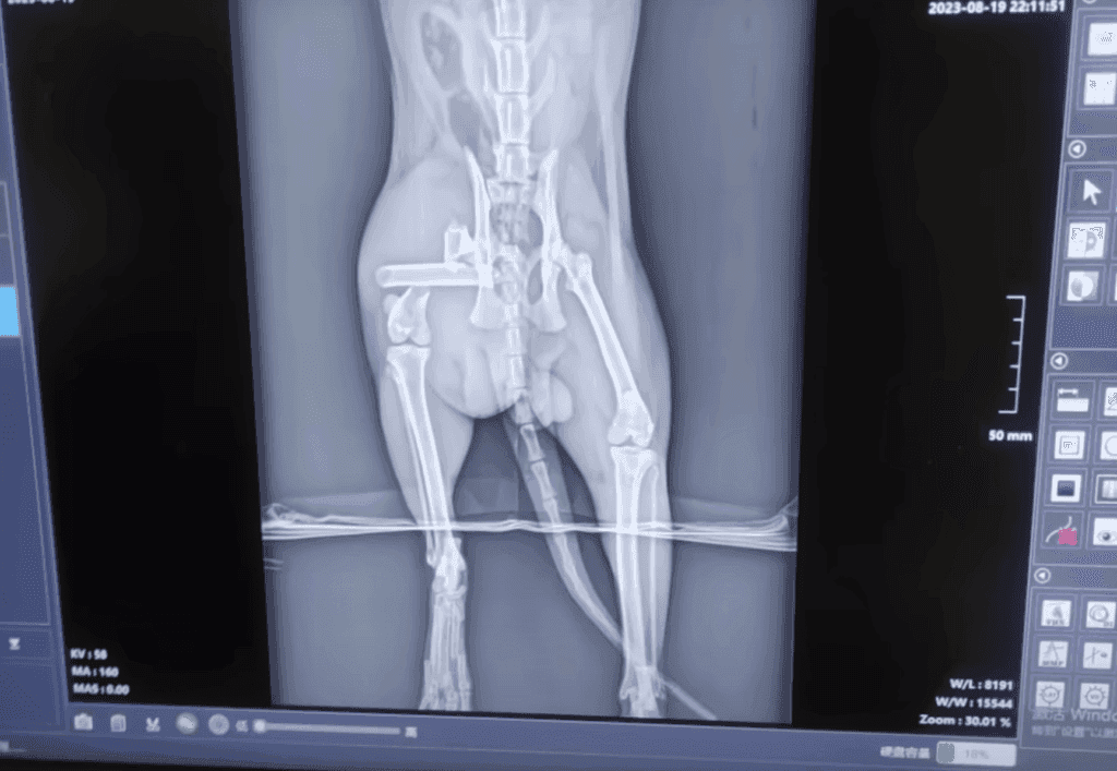X-rays revealed multiple fractures in its legs, leaving the vet stunned at how much pain the tiny creature must have endured.