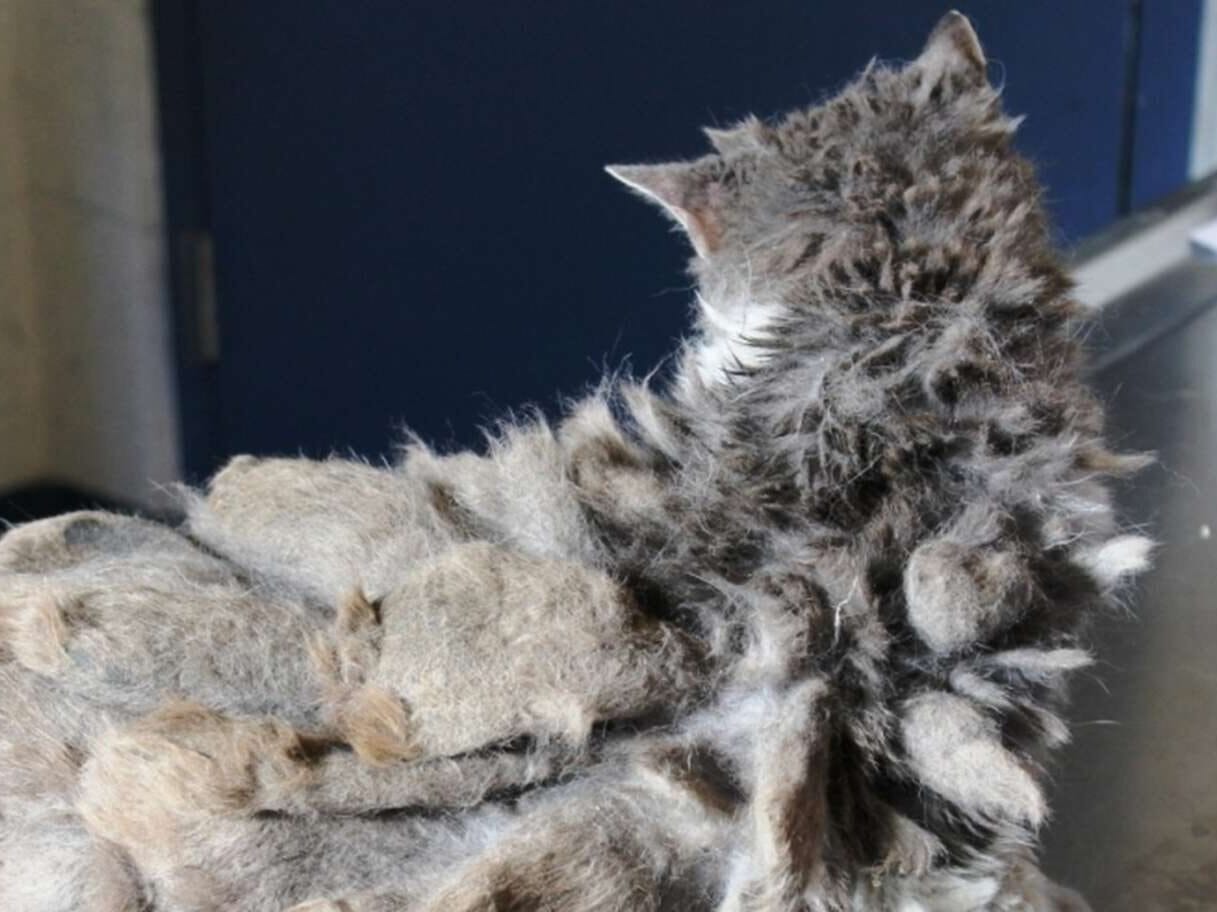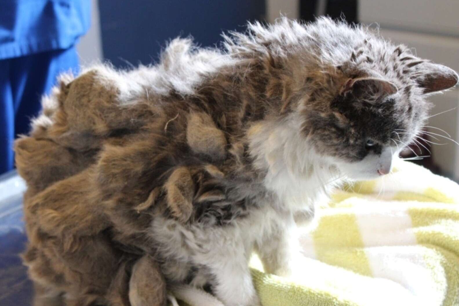 This was a cat so covered in thick, tangled clumps of fur that it was almost impossible to recognize her.