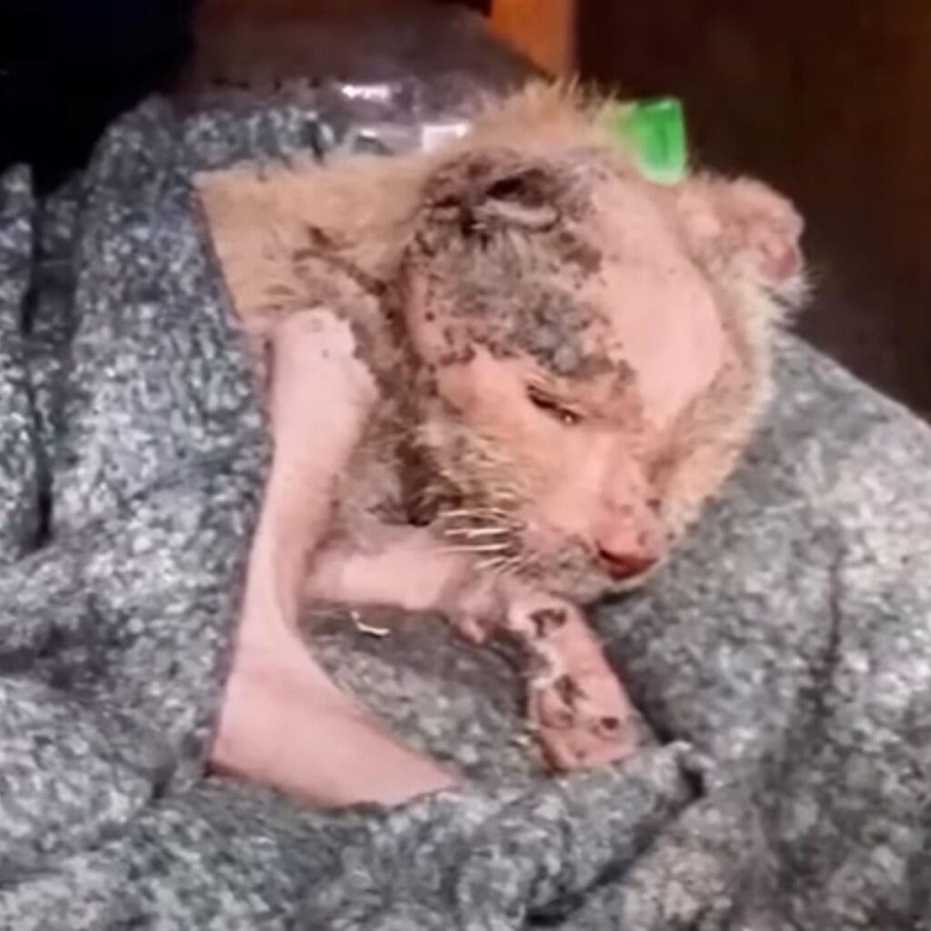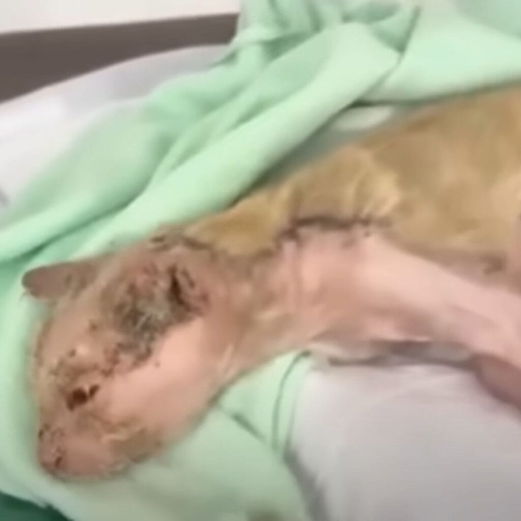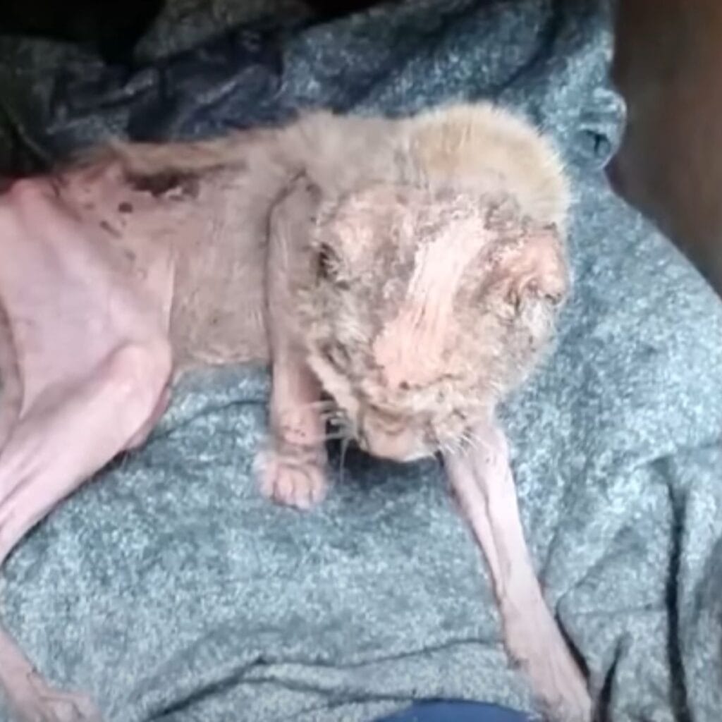 At first glance, she looked lifeless. Her fur was gone, her body was skin and bones, and she had open wounds that told a painful story without a single word.