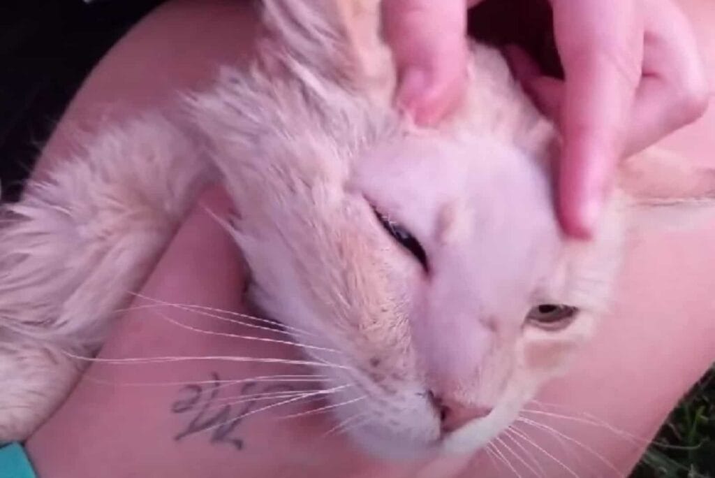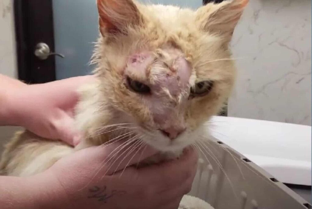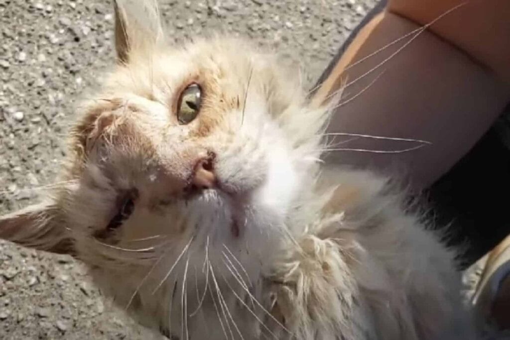 Left behind, after his owners moved away, the cat had been struggling on his own.