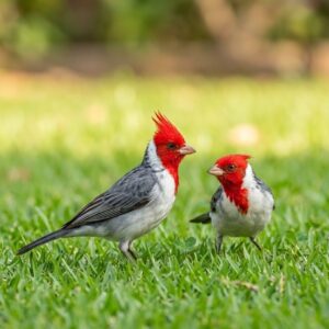 In the open grasslands and palm-dotted landscapes of South America, this striking songbird moves with confident grace among low branches and garden paths. Its bright red crest…