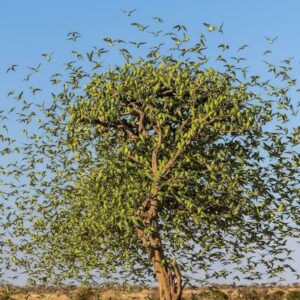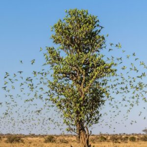 In the sunlit wetlands and grassy clearings of northern South America, this scarlet-crowned sentinel perches boldly above reeds and riverbanks. It feeds on seeds, grains, and small…