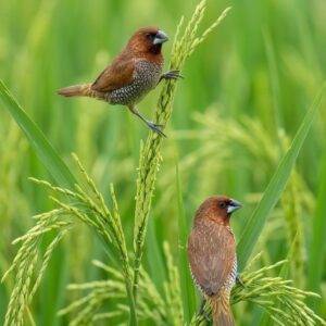 In the warm fields and reed-filled wetlands of South and Southeast Asia, this tiny flocking bird moves through the grasses like a ripple of brown and white….