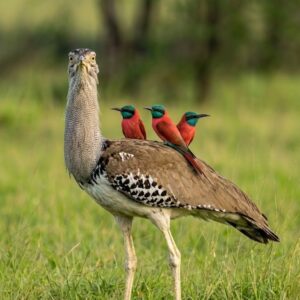 These birds don’t take an Uber — they live in symbiosis. Across the African savanna, the massive Kori Bustard walks steadily through the grass while flocks of…