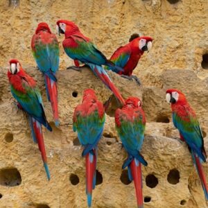 In the vast rainforests of Central and South America, this scarlet giant sweeps across the canopy with powerful, deliberate wingbeats. It feeds on fruits, nuts, and hard…