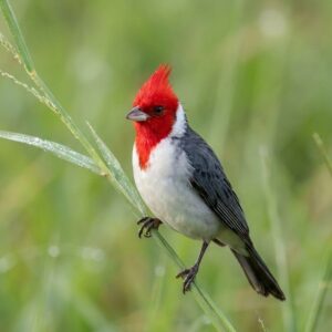 In the sunlit wetlands and open woodlands of South America, this scarlet-crowned songster moves with poised confidence along water’s edge. It feeds on seeds, insects, and tender…