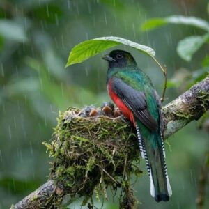In the warm, dappled forests of Central America, this jewel-toned sentinel perches in stillness, watching the canopy with unblinking calm. It feeds on ripe fruits and passing…
