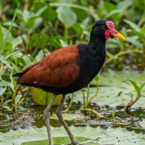 In the sunlit wetlands of sub-Saharan Africa, this long-toed dancer glides across floating leaves as if the water itself were solid ground. It feeds on insects, seeds,…