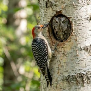 In the cool, pine-scented highlands of Mexico, this scarlet ember slips through misty branches with quiet intent. It searches needles and moss for tiny insects and larvae,…
