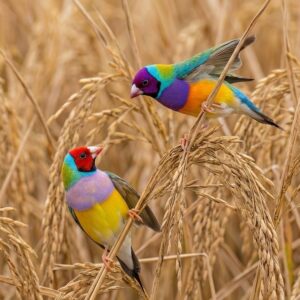 In the warm savannas and open woodlands of East Africa, these sky-blue companions flit low through grasses with soft, musical chatter. They forage for tiny seeds and…