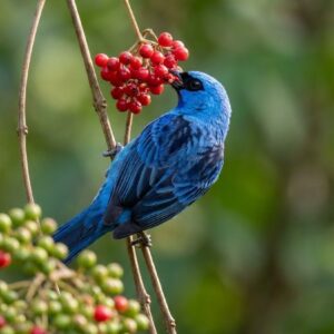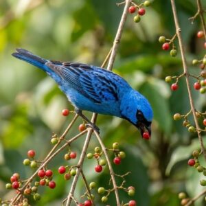 In the humid montane forests of Central and South America, this sapphire-and-ink jewel moves through the canopy with lively assurance. It feeds on ripe fruits, nectar, and…