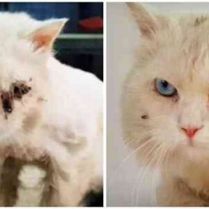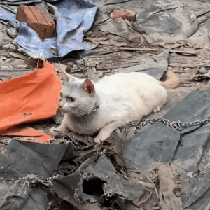 While walking through a quiet, overlooked corner of the city, she discovered a heart-wrenching scene. A white cat, visibly malnourished and weak, chained to a concrete slab…