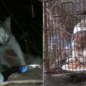 Right by an old worn-out fence, there was a terrified cat with her eyes wide with fear and her tiny body trembling in the cold. Tied to…