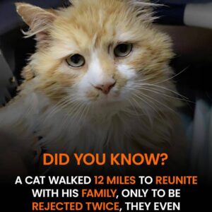 A determined cat trekked 12 miles 🐱 to reunite with his family, driven by love and loyalty. 💔 After being separated, the brave feline navigated busy streets,…