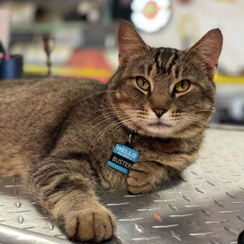 Buster didn’t look like a tough cat that day. He looked like a tired, lonely sweet soul sitting in Ray’s Ohio junkyard, like he had nowhere else…