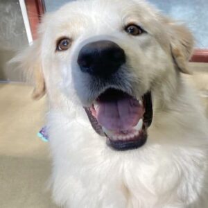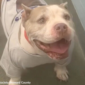 A rescued pregnant stray dog can’t help but smile after surviving a challenging hoarding situation.