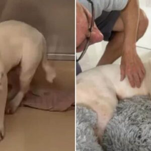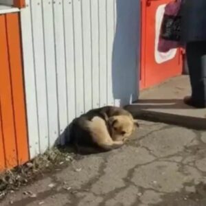 On a chilly day, a lonely pup huddled in front of a store, silently hoping for a kind soul to notice her and offer a helping hand….