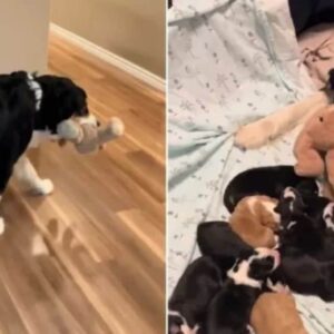 Mother Dog Keeps Bringing Soft Toy Back To Her Bed And The Reason Melts All Of Our Hearts