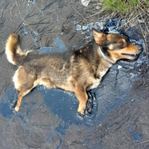 Abandoned Dog Sank Into Tar And Fought To Stay Alive With One Broken Bark