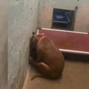 Heartbroken Pitbull Sits Facing the Wall, Too Defeated to Look at Anyone—Until Love Finds Her