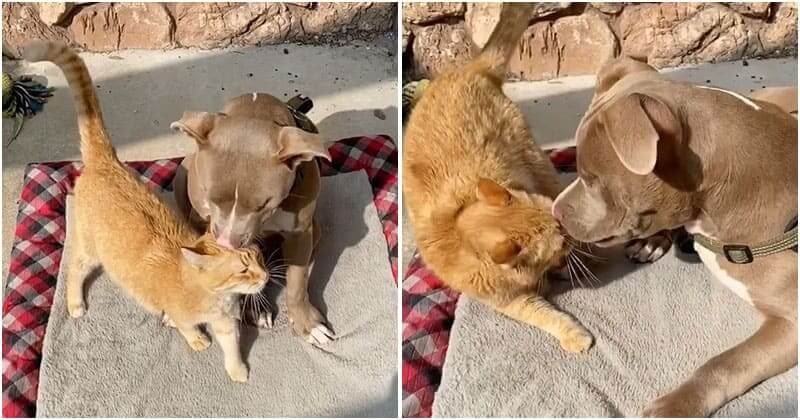 A heartbroken cat finds happiness when his parents bring home a blind pit bull puppy, igniting newfound joy.