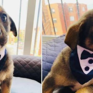 Sweet Puppy Stood Waiting In A Tuxedo, But His New Family Never Came