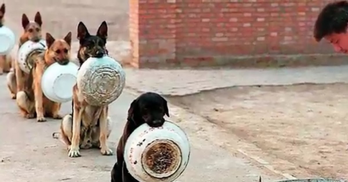 The dog’s unique ability: to place the bowl in its mouth to impress the food.