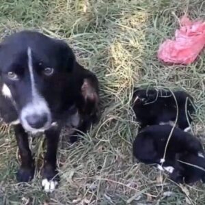 On a deserted stretch of road, a skinny dog stood quietly beside two injured puppies. Her name wasn’t known yet, but her pain was written across her…