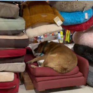 Exhausted Stray Dog Finds His Way Into a Pet Store And Curls Up on the Comfiest Bed