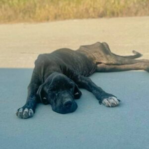 Starving Dog Collapses In The Road But Still Wags Her Tail