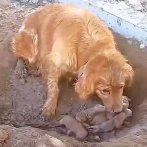 Mother Dog Gave Birth In Mud Pit While Fighting To Keep Her Puppies Alive