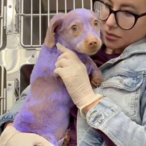 Purple Puppy With Burned Ears Finally Finds The Love He Always Deserved