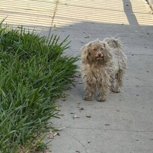 Matted Little Dog Waited On A Street Corner For Love