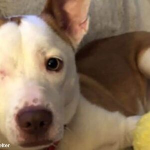 Late last year, a young brown and white pup sat quietly inside a crate near an apartment complex. Her thin body revealed the struggles she had endured….