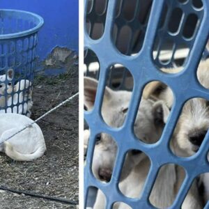 Abandoned Laundry Basket Reveals Tiny Dog Family in Need of Rescue
