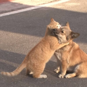 Stray Cat Brings Comfort to Abandoned Dog Waiting for His Owner to Return