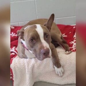 Under the blazing California sun, a small pit bull named Clover stood trembling on the edge of a dusty road. Her thin body shimmered with a strange…