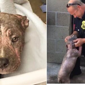 Tory did not look like a real dog at first. She looked like a shadow trying to breathe. Her body was skin and bones. Her ribs rose…