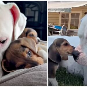 Scared Beagle Hides In Fear Until A Deaf Dog Becomes Her Guardian