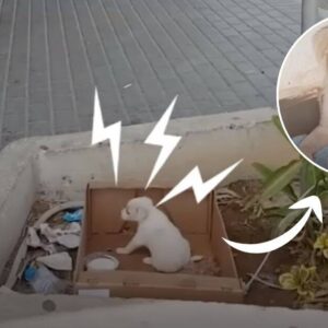 Driving through the crowded streets of a bustling city, a compassionate man spotted a little, exhausted puppy lying next to a bench on the hot sidewalk. The…