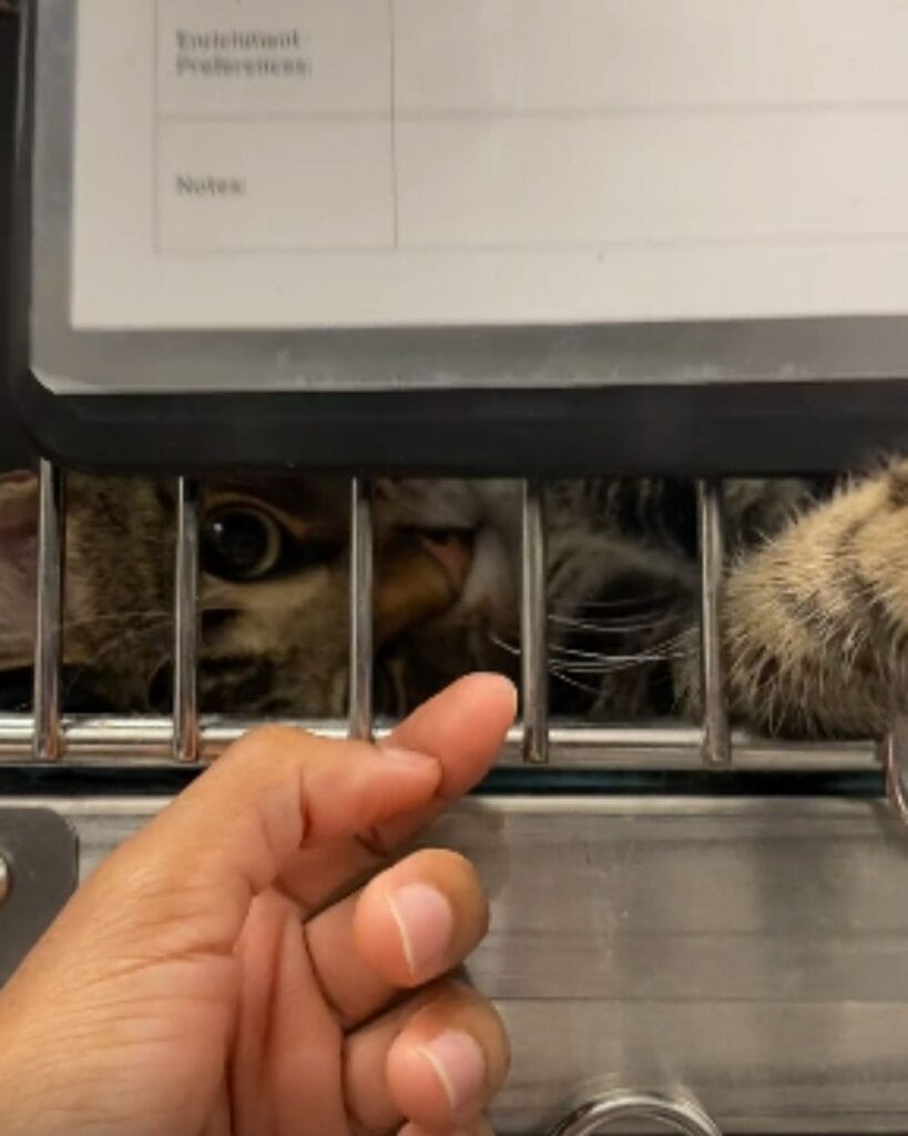 Others try to catch someone’s attention with a small meow or a playful swat through the bars.