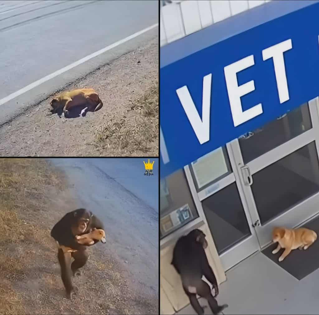 Chimpanzee Carried Injured Stray Puppy To A Vet