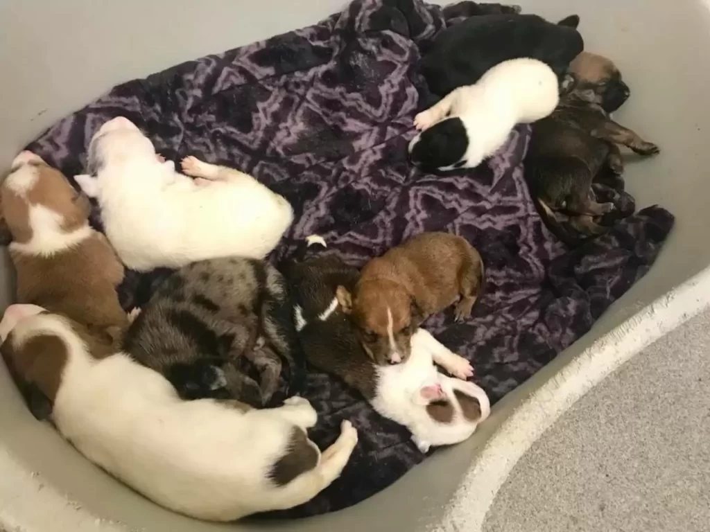 When staff at a Texas animal shelter first saw Melody, they knew something wasn’t right. Her frame was so thin you could see every rib, yet she clung closely to a group of tiny newborns—her ten puppies.