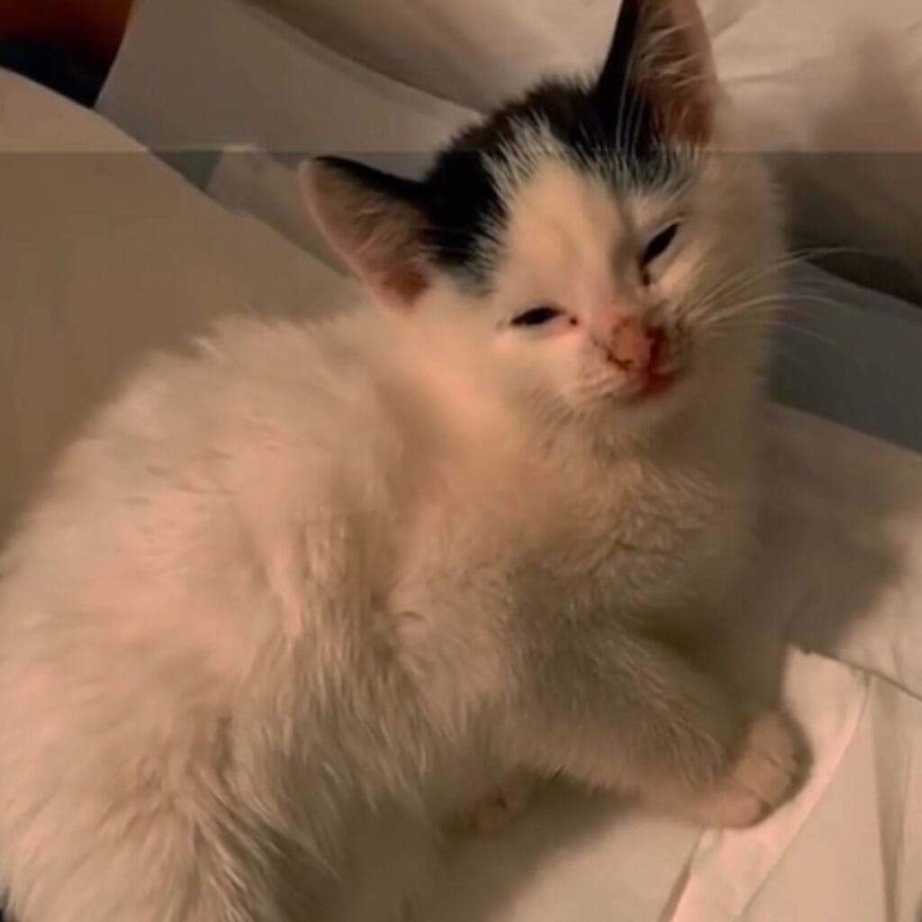 When they spotted the tiny kitten struggling alone, they didn’t think twice.
