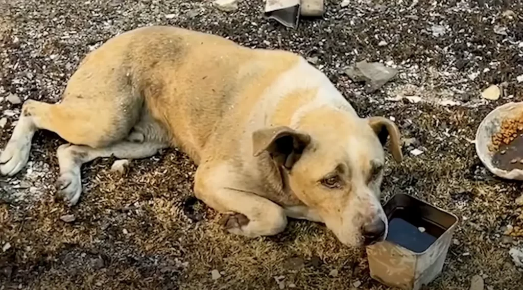 They walked closer and found him curled tightly on the scorched ground, his fur singed and paws raw. The dog looked as though he had accepted his fate.