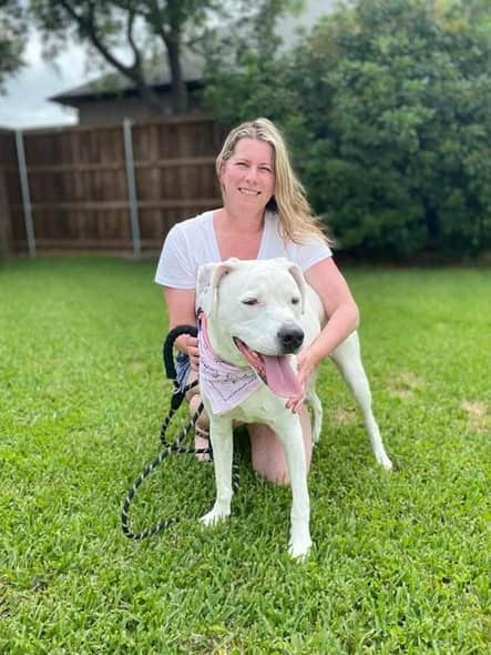 Cleo lives with her foster mom, Vicky Ham, through Safe Haven Animal Rescue.