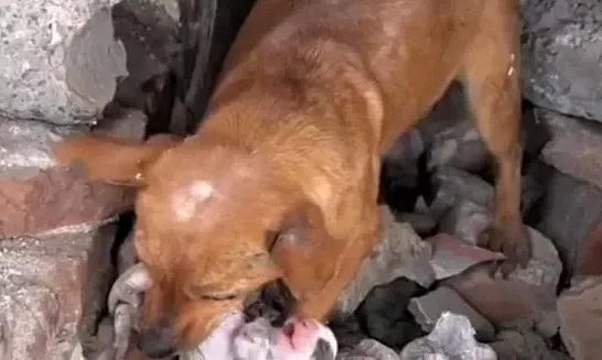 Throughout this time, the mother dog was doing everything she could to find a warm place for her babies, but the ruins offered no refuge from the cold.
