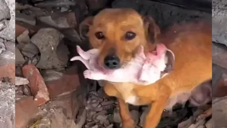 Desperate Mama Dog Pleads for Help to Save Her Freezing Puppies