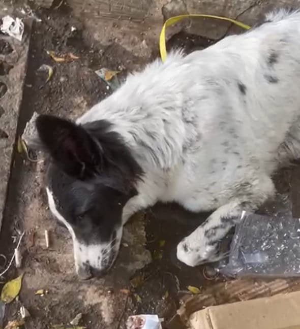 A dog lay perfectly still on the ground, as if the whole world had forgotten she existed.
