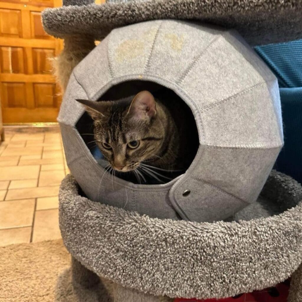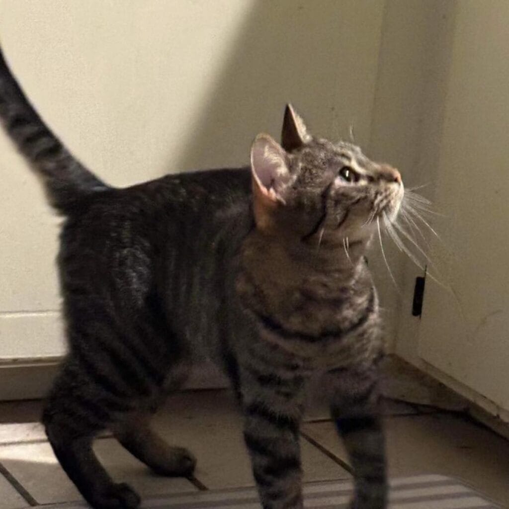 She loves to wander around, purr constantly, and greet everyone she meets. “I’m a very sweet, well-adjusted three-year-old,” her post reads. “I love being petted and picked up. I just love to talk to all the people.”